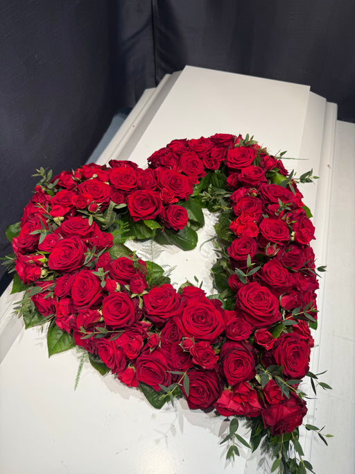 Original pris 1.800,00 kr - Original pris 2.400,00 krOriginal pris1.800,00 kr - 2.400,00 kr1.800,00 kr - 2.400,00 krNuværende pris 1.800,00 krÅbent hjerte med hvide blomster og to nuancer af din valgte tilvalgsfarve. Viste hjerte kr 1800,- Bånd er tilkøb