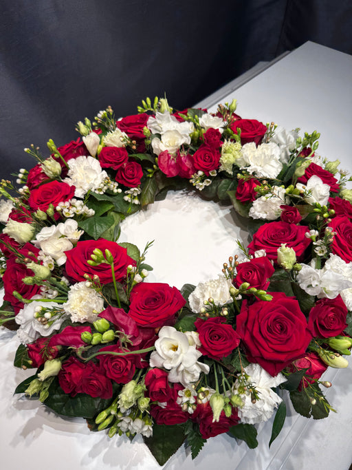 Original pris 1.800,00 kr - Original pris 2.500,00 krOriginal pris1.800,00 kr - 2.500,00 kr1.800,00 kr - 2.500,00 krNuværende pris 1.800,00 krDenne krans består af udvalgte blomster i rød og hvidSom foto uden bånd kr 1800,- Bånd er tilkøb