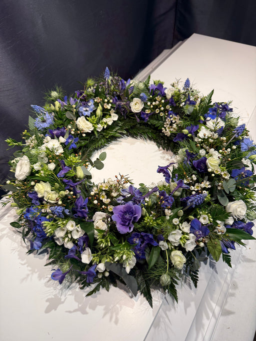 Original pris 1.800,00 kr - Original pris 2.500,00 krOriginal pris1.800,00 kr - 2.500,00 kr1.800,00 kr - 2.500,00 krNuværende pris 1.800,00 krHer udgør blå en basis i kransen, vælg tilvalgsfarve. Som foto uden bånd kr 1800,- Bånd er tilkøb